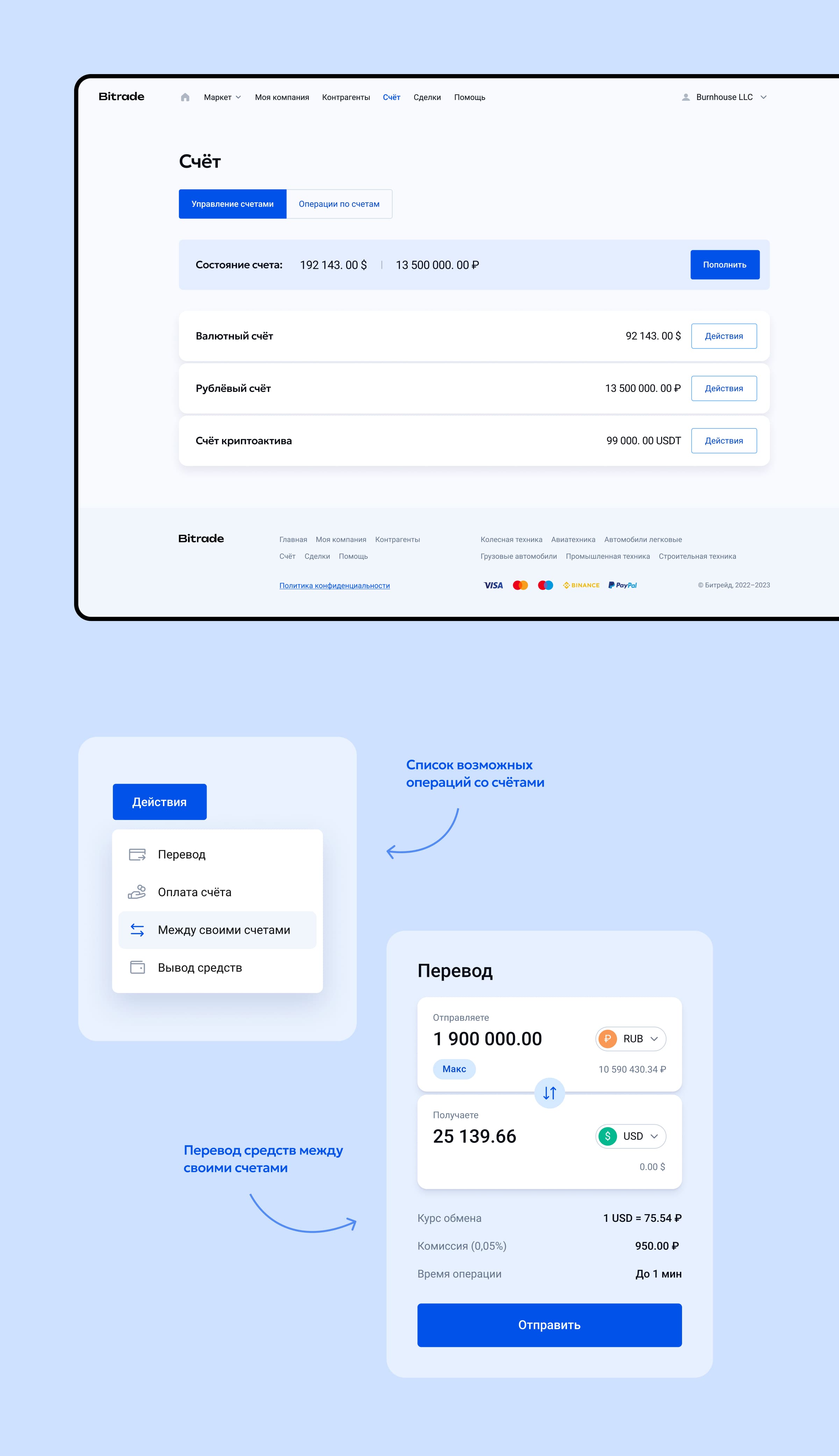 Разработан дизайн mvp личного кабинета клиента Bitrade