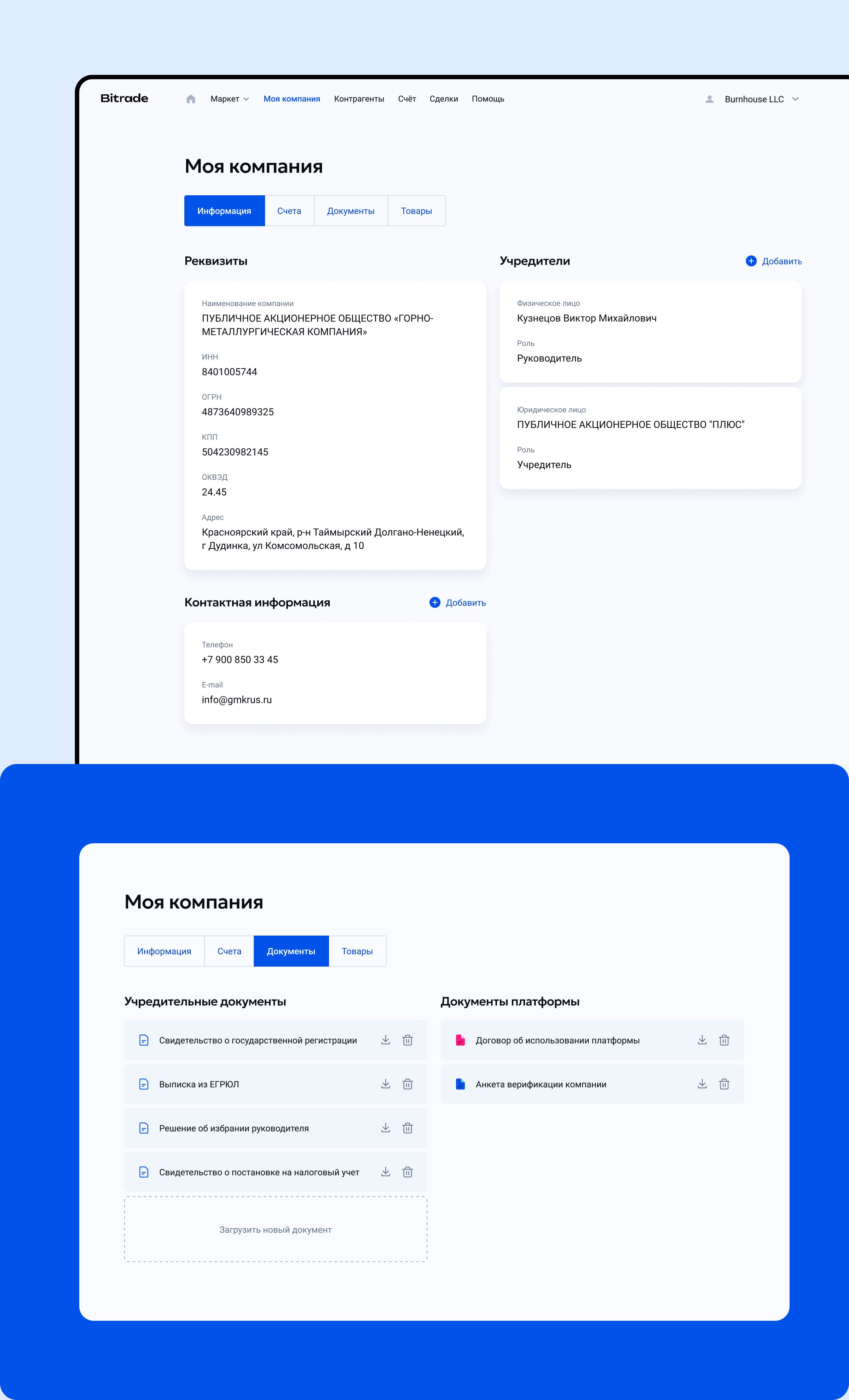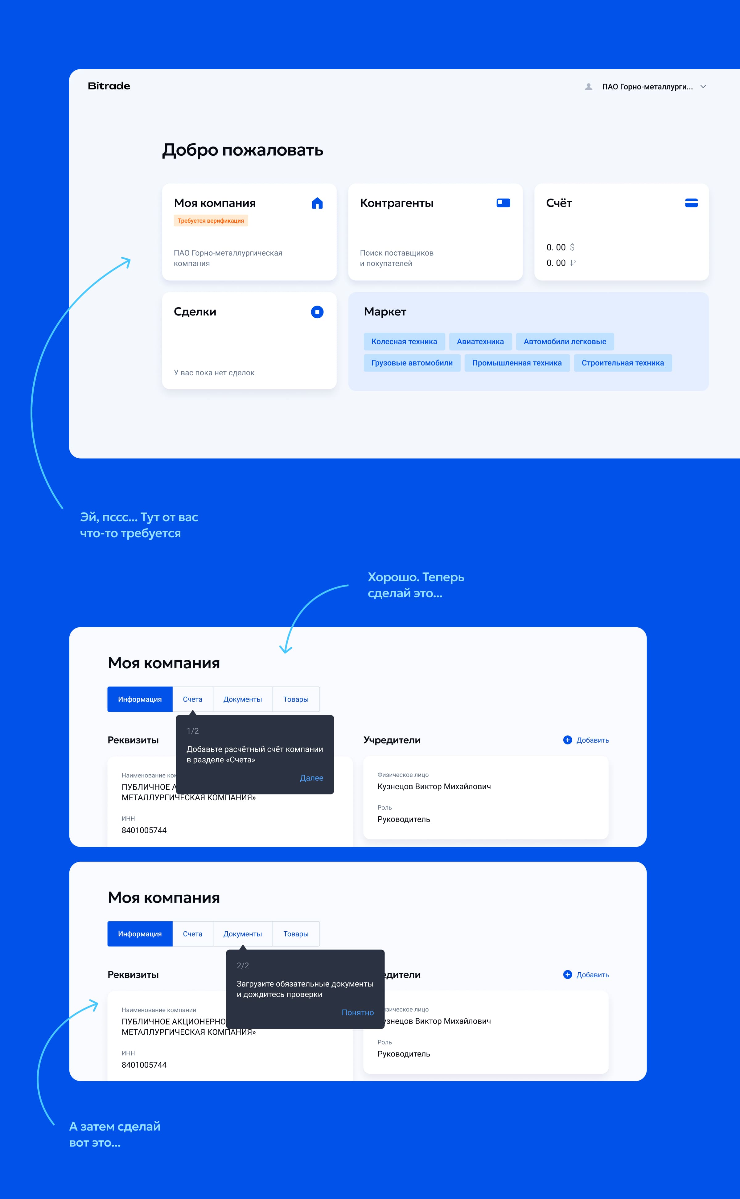 Прежде, чем открывать свою первую сделку, клиенту необходимо загрузить документы. Мы подготовили подсказки, чтобы настройка аккаунта прошла легко и безболезненно.